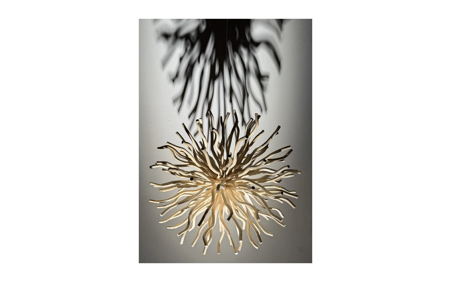 Brooklyn, NY – 440 Gallery is pleased to present Reverence, a solo exhibition of abstract sculptures by Jon Bunge. The works unfold through form, shadow, and movement. Constructed from assembled tree branches, the sculptures cast intricate, shifting shadows across the walls. Suspended from the ceiling, they rotate dynamically with air currents, allowing form and shadow to change continuously, and transforming static materials into a living, time-based experience.