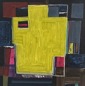 Catherine Orrok’s abstract acrylic paintings use a grid-like structure to order invented space. She emphasizes process and materiality through the application of paint with evident brush marks, lending a duality to the work. On the one hand, we see a perceptual response to the forms and colors; at the same time, we feel the physicality of the object. Working within a constrained format like a square, or the elongated vertical of Are We There Yet, calls attention to the substance of painting. As Orrok states, “The shapes, format, paint-handling, and touch all contribute to the creation of a little world that is unique to each painting.”