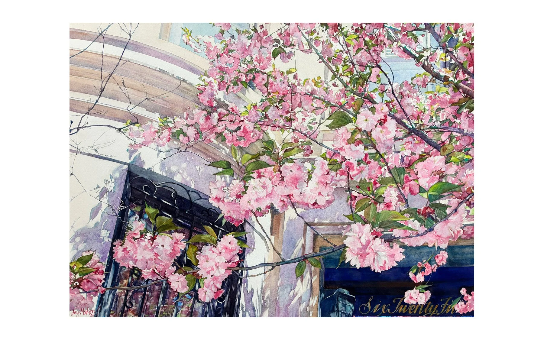 “These paintings have an emotional element to them,” says Joy. “After such a harsh winter, the arrival of warmer weather and more sun just revives me. I wanted to convey that through this selection of paintings. I love how heavy spring blossoms throw interesting shadows against building facades—the shapes made with the light are as energetic to me as the actual trees are. I am also showing a selection of floral still life paintings that touch upon the passage of time and the beauty that intensifies through age. Most importantly, I want these paintings to bring a bit of respite from the bombardment of negative events we all try to endure.”
